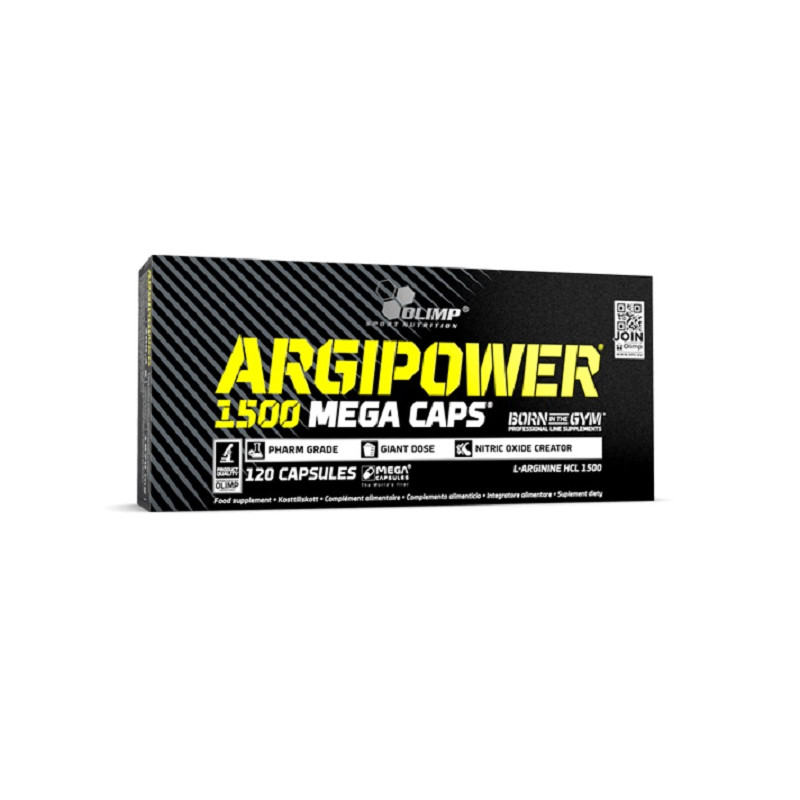 Argi Power 1500 Mega Caps від польського бренду Olimp Labs – чистий, адаптований для найкращої засвоюваності L-аргінін у м'яких капсулах.