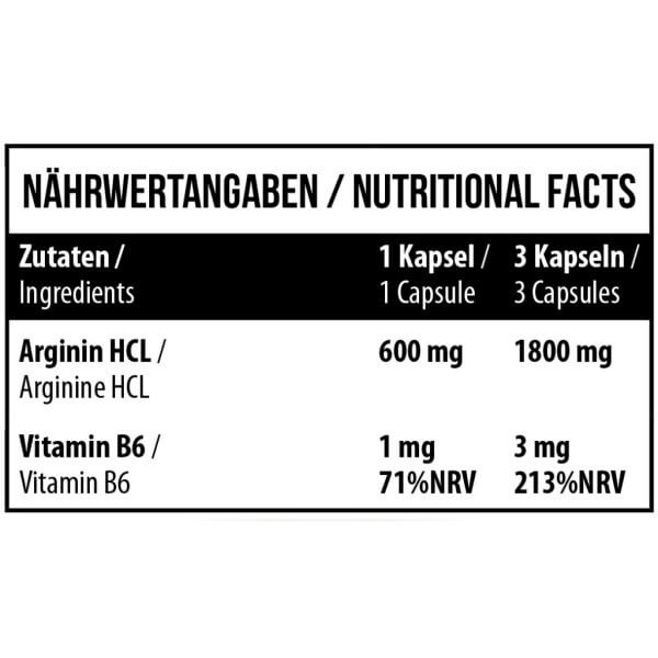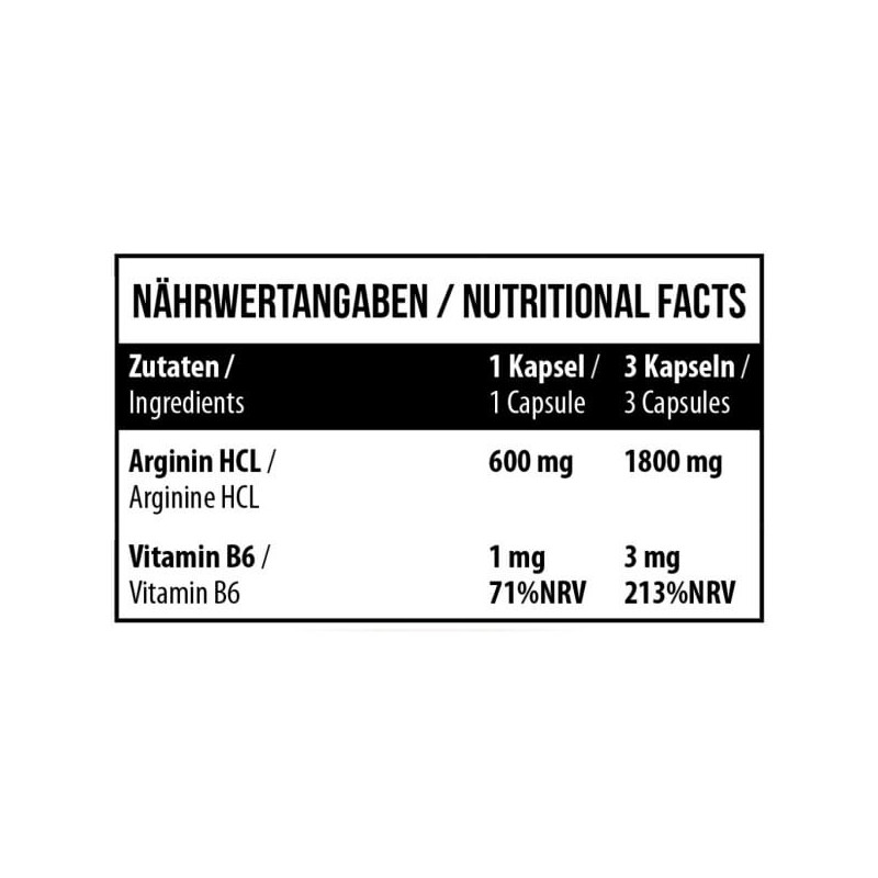 Arginine HCL від популярного німецького бренду спортивного харчування MST – потужне джерело умовно замінної амінокислоти аргініну. Організм виробляє її у дуже невеликій кількості. Тим часом, для нормальної життєдіяльності людини, що особливо веде активний спосіб життя, потрібно досить багато цього нутрієнта. Його можна отримувати з їжі, в основному, з багатих на білок продуктів і страв. А можна доповнити щоденний раціон корисним та комфортним у прийомі біоактивним продуктом у капсулах. Для підвищення засвоюваності аргініну препарат посилено вітаміном В6.