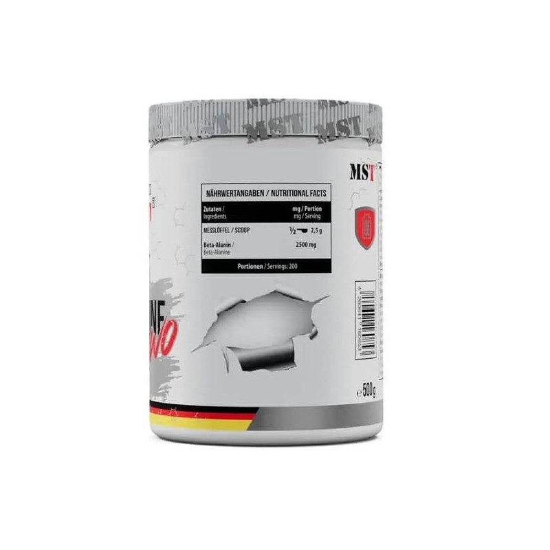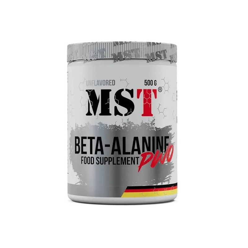 Beta Alanine RAW від німецького спортивного бренду MST – біоактивна добавка у вигляді порошку, до якої входить натуральна необроблена амінокислота бета-аланін. Цей нутрієнт утворюється в організмі з карнозину та урацилу, надходить ззовні з м'ясних, рибних та молочних продуктів та страв, а також з пантотенової кислоти.