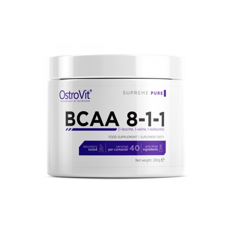 ВСАА 8-1-1 -це інноваційна спортивна добавка, що складається з трійки незамінних амінокислот з розгалуженими ланцюгами-лейцину, ізолейцину і валіну. Вони знаходяться в ідеальному співвідношенні 8 до 1 до 1, що забезпечує відмінну підживлення мязової тканини під час тренувань