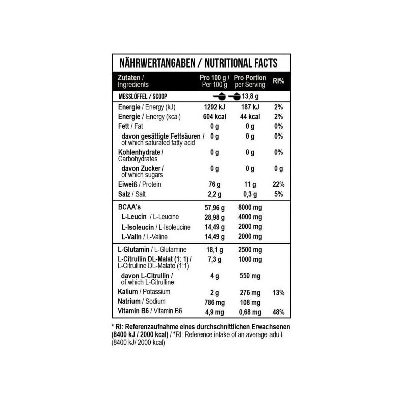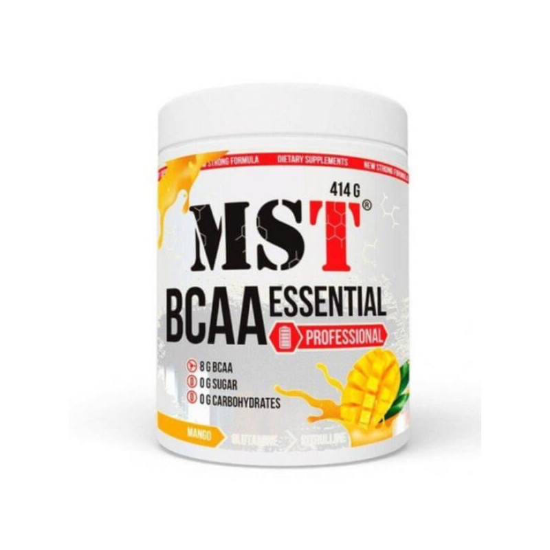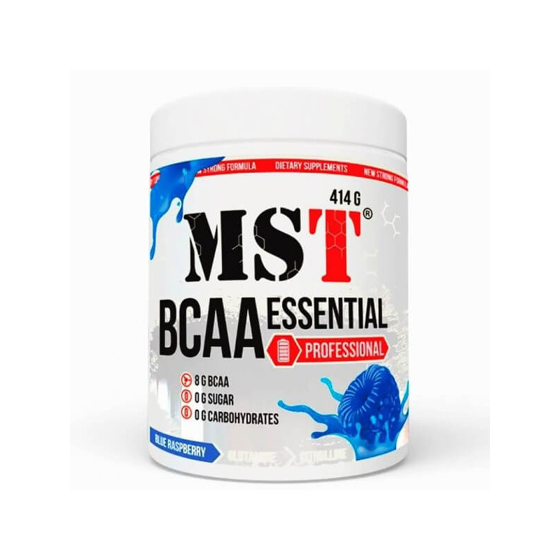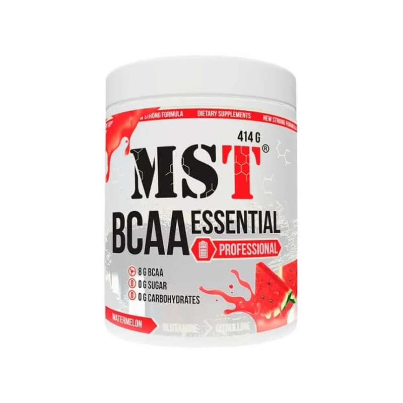 BCAA Essential Professional Fermented від виробника з Німеччини MST – унікальний комплекс незамінних амінокислот БЦАА у класичній пропорції 2:1:1, доповнений глютаміном та цитруліном, а також збагачений вітамінами та мінералами. Такий склад значно розширює спектр позитивної дії біоактивної добавки на організм у порівнянні зі звичайними БЦАА-комплексами.