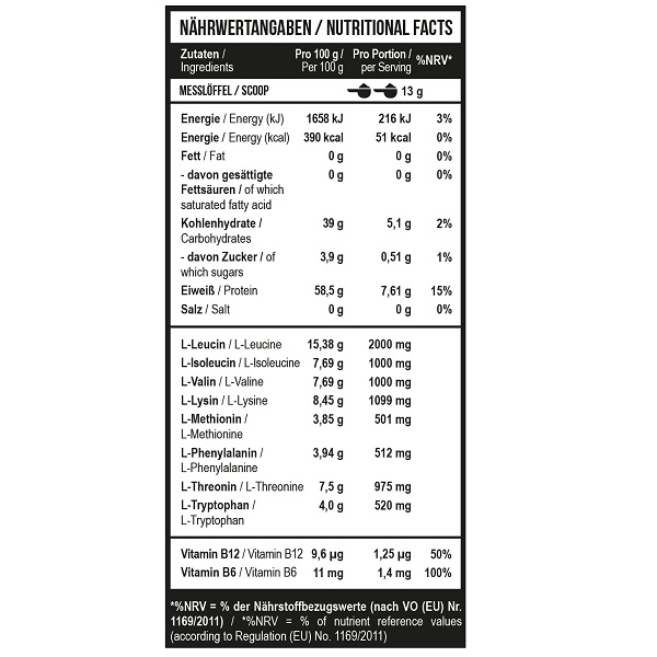 У порції вагою 13 г BCAA&EAA Zero від MST міститься: