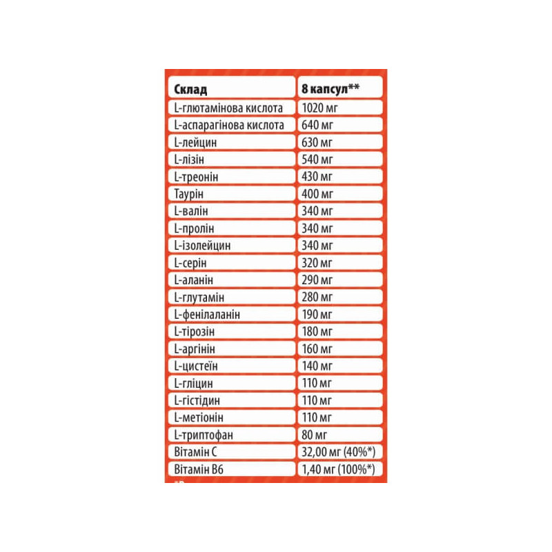 · 640 мг аспаргінової кислоти;