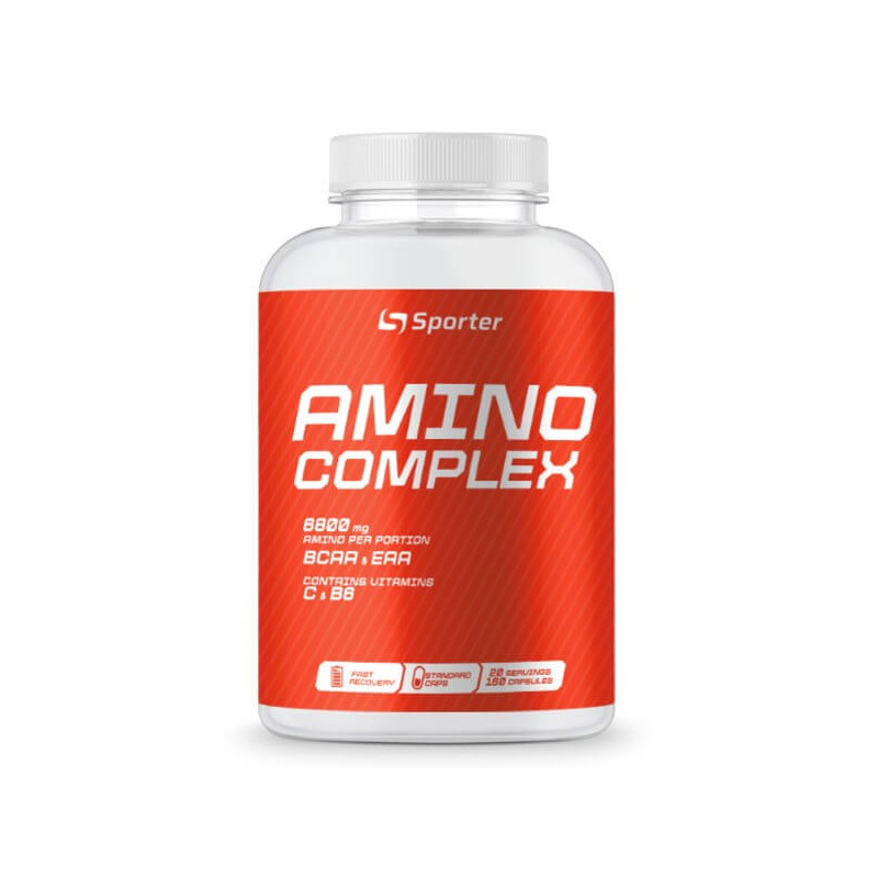 Amino Complex від популярного виробника з України Sporter – ідеально збалансований амінокислот, доповнений вітамінами В6 та С.