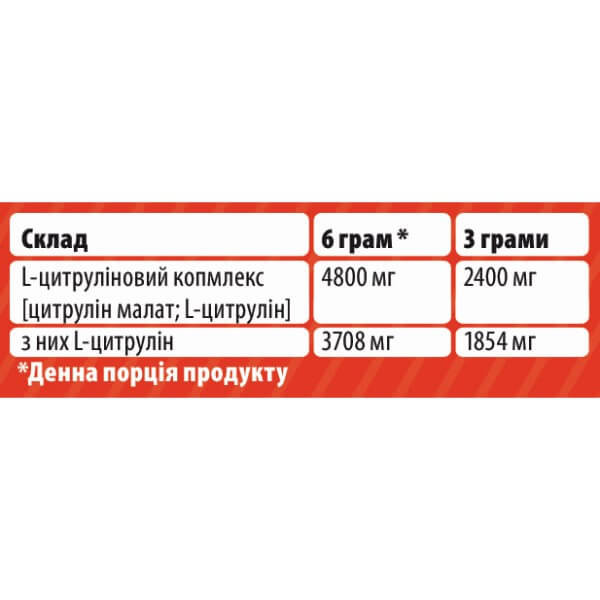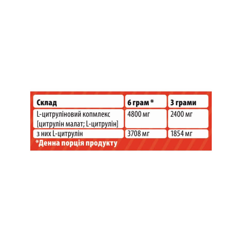У порції біоактивної добавки Citrulline Powder від Sporter міститься: