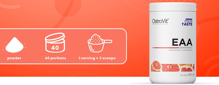 Приймають EAA від Ostrovit у вигляді напою, змішуючи 10 г сухого порошку з 200 мл чистої негарячої води. В активні дні рекомендується вживати коктейль перед їдою або тренінгом, а також після тренування. У дні відпочинку достатньо випити коктейль один раз між трапезами.