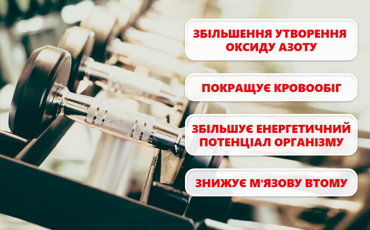 L-Citrulline Malate допомагає збільшити кровообіг та запобігти накопиченню лактату в м'язах, що дозволяє триваліше тренуватися без відчуття втоми. До того ж, він може допомогти зменшити біль у м'язах та прискорити відновлення після тренувань.