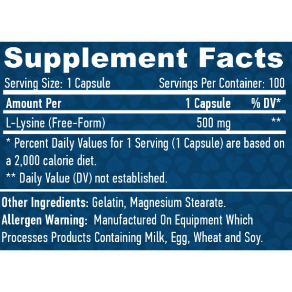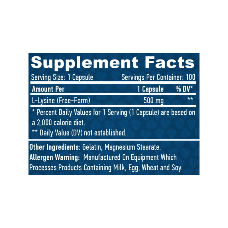 У кожній капсулі БАДу L-Lysine від Haya Labs міститься: