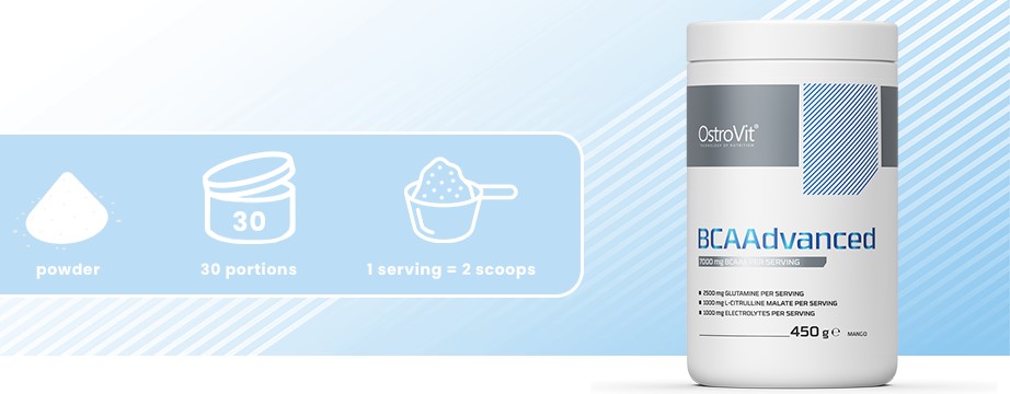 BCAAdvanced від польського спортивного бренду OstroVit – ідеально збалансований комплекс амінокислот із розгалуженим ланцюгом, доповнений глютаміном, малатом цитруліну, вітаміном В6 та оптимальною комбінацією мінералів-електролітів. Порошкова добавка зі смаком зеленого яблука або манго ідеально підійде людям, які прагнуть заповнити нестачу значних амінокислот в організмі та підтримати електролітний баланс, при цьому не бажаючим з тих чи інших причин приймати біодобавки у таблетках чи капсулах.