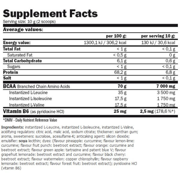 BCAA Micro Instant Juice від провідного британського спортивного бренду Amix – харчова добавка, що є збалансованим комплексом незамінних амінокислот ВСАА в оптимальній пропорції 2:1:1, посилений вітаміном В6.