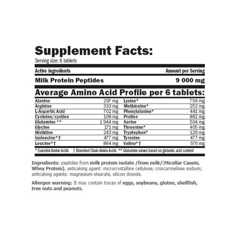У порції з 6 таблеток Amixpro Amino Milk Peptide від Amix міститься: