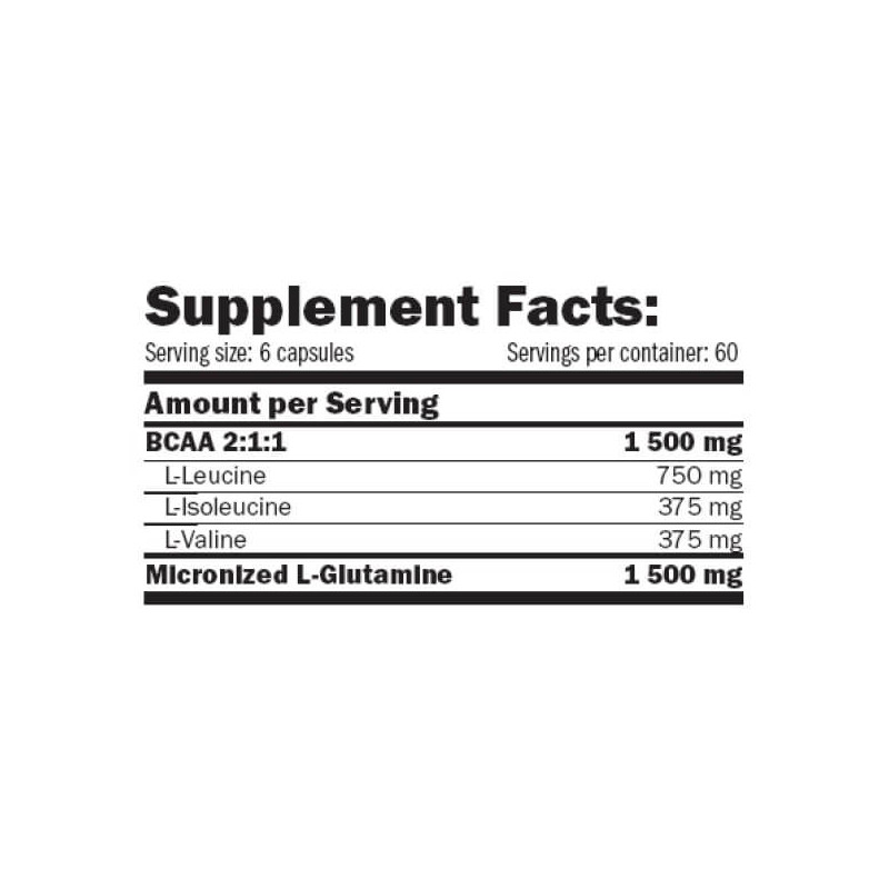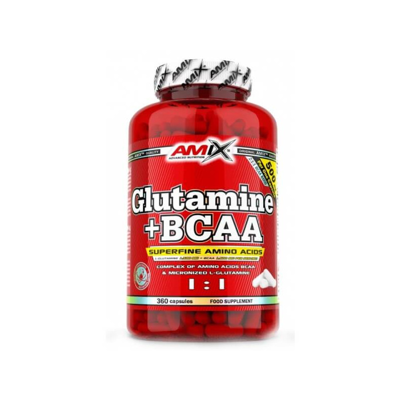 L-Glutamine+BCAA від компанії з Великобританії Amix – комплекс амінокислот з розгалуженим бічним ланцюгом ВСАА в оптимальному співвідношенні 2:1:1, посилений глютаміном у вільній L-формі. У його виготовленні використовувалися якісна високоочищена природна сировина та прогресивні, що довели на практиці свою ефективність технології. Такий підхід у комплексі з капсульною формою біоактивної добавки забезпечують її комфортний прийом, чудову засвоюваність, відсутність звикання та побічних реакцій з боку організму.