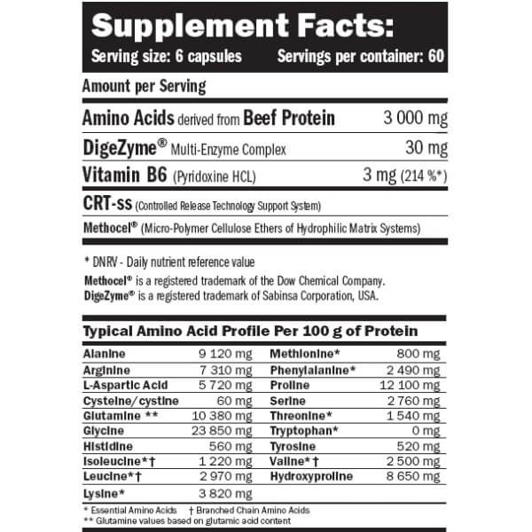 У порції Beef Extra Amino від Amix із 6 капсул міститься: