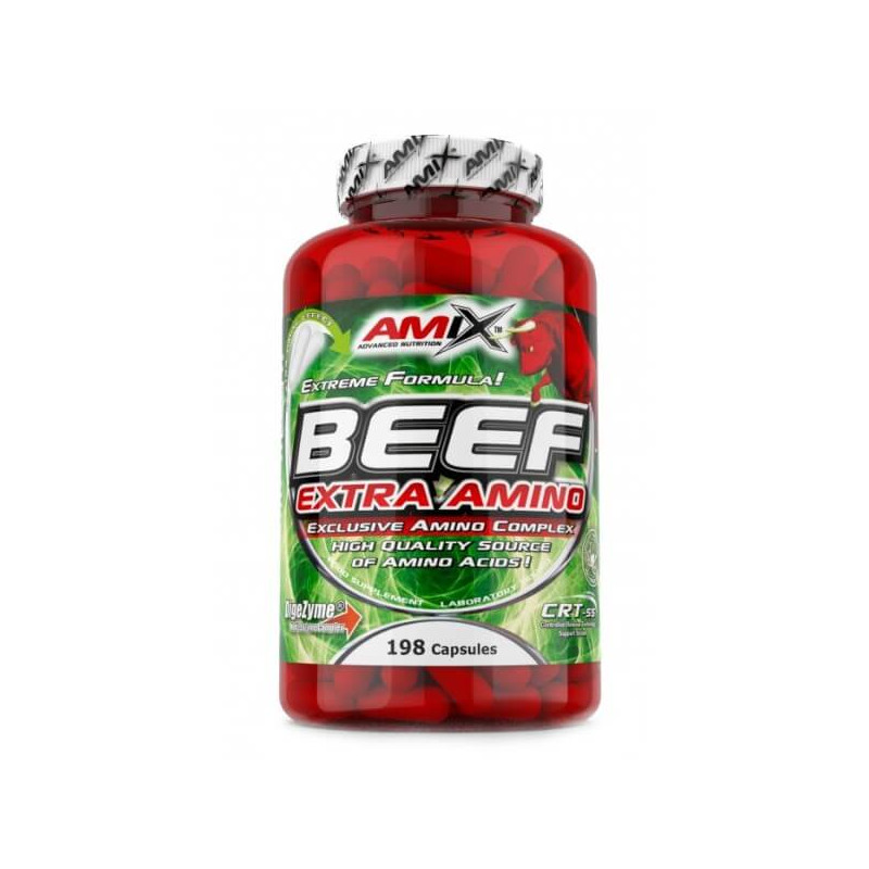 Beef Extra Amino від відомого виробника з Великобританії Amix – біоактивна добавка, основу якої складає витяжка із ізоляту яловичого протеїну. Він має багатий та збалансований амінокислотний профіль, тому в даному комплексі присутні одразу 19 амінокислот в оптимальних пропорціях. Крім цього, до складу продукту входять комплекс травних ферментів та вітамін В6.