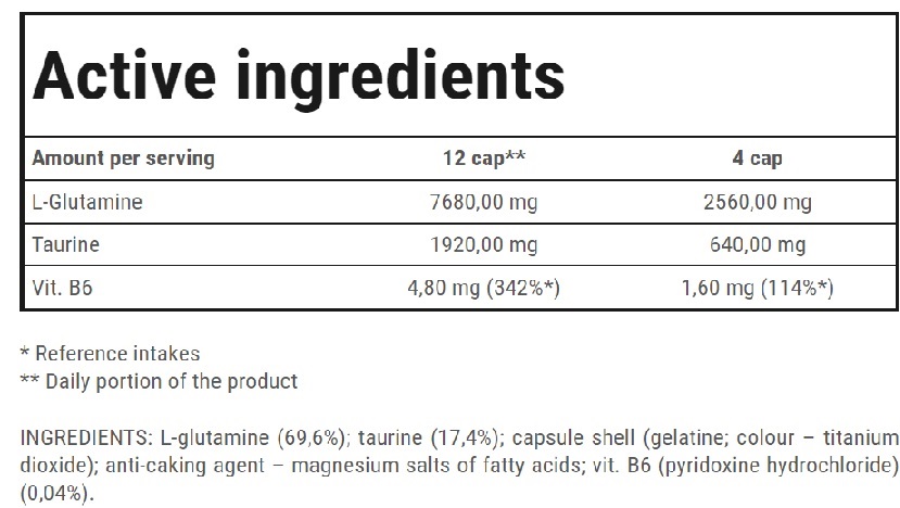 Підвищення витривалості: L-глутамін є джерелом енергії для клітин організму, особливо в ситуаціях стресу, наприклад, під час тренувань. Його прийом може сприяти покращенню витривалості та зменшенню рівня втоми.