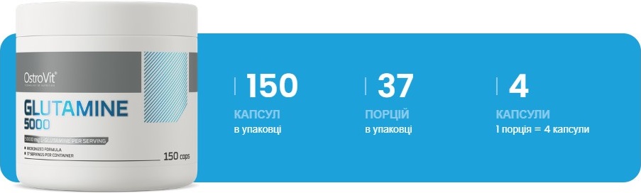 OstroVit GLUTAMINE 5000 (150 капсул) - це високоефективний харчовий додаток, розроблений для задоволення потреб організму в амінокислоті глутаміну. Цей продукт входить в лінійку харчових добавок від OstroVit, яка славиться своєю високою якістю та ефективністю. Глутамін - це важлива амінокислота, що виконує низку ключових функцій у підтримці здоров'я та оптимізації фізичної активності.