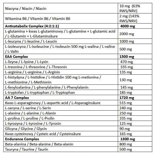 · 4 г антикатаболічного міксу з глютаміном та ВСАА;