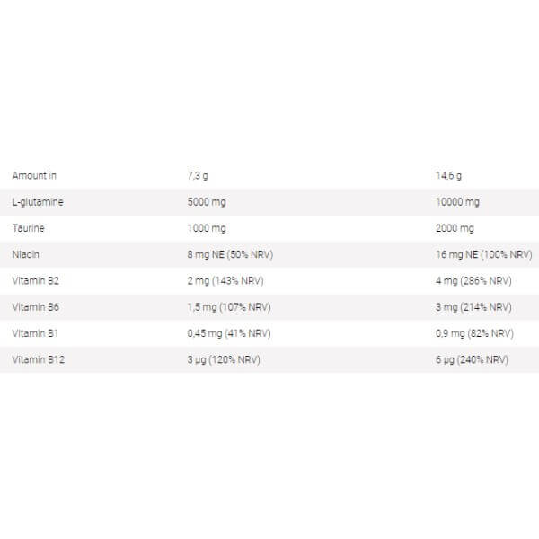 Усунути його допоможе натуральна біодобавка, у складі якої глютамін органічно доповнений та посилений таурином та вітамінами групи В. Зручна для приготування коктейлів порошкова форма та кілька варіантів яскравих природних смаків зроблять вживання продукту комфортним та приємним.