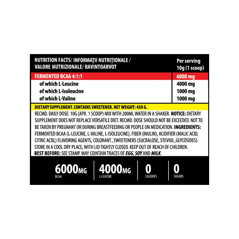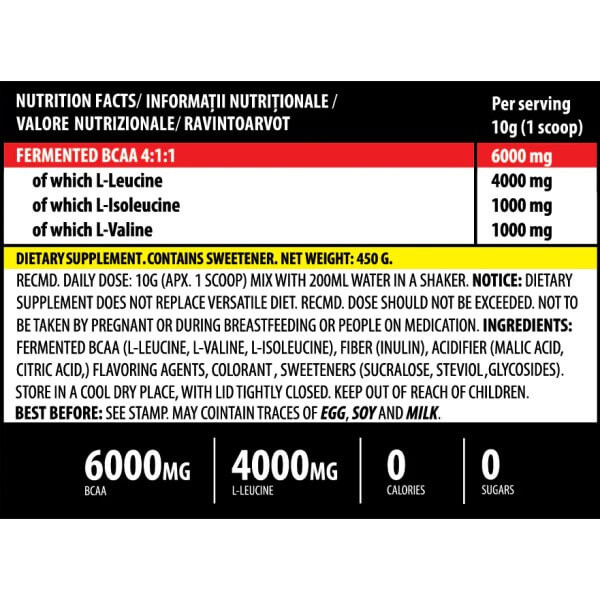 Споживач може придбати цю ВСАА добавку у формі однорідного порошку з ненав'язливим фруктовим смаком. Він добре розчиняється у прохолодних рідинах і легко п'ється, не залишаючи після себе специфічного післясмаку.