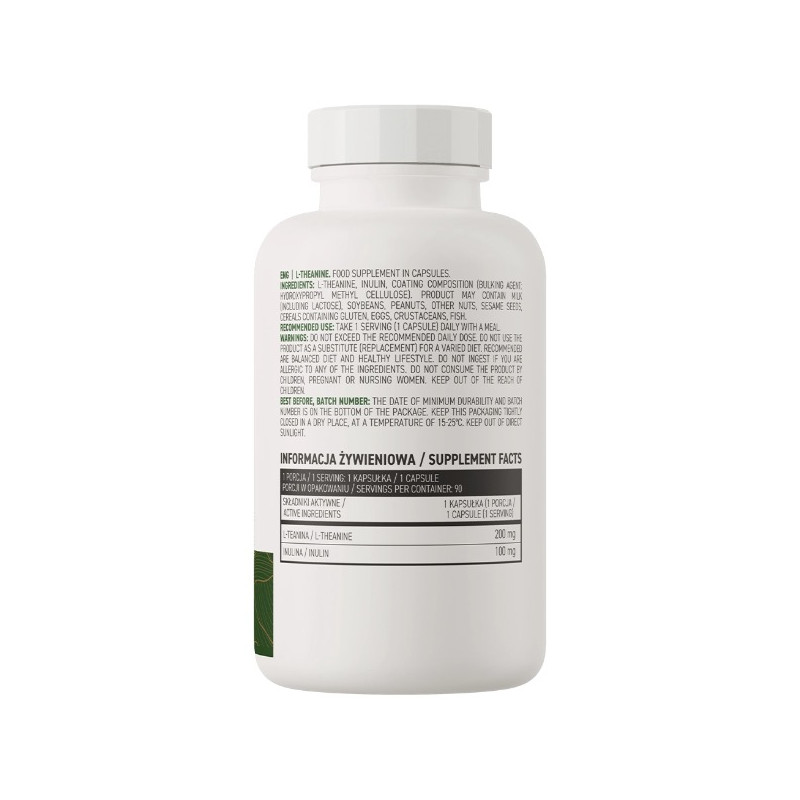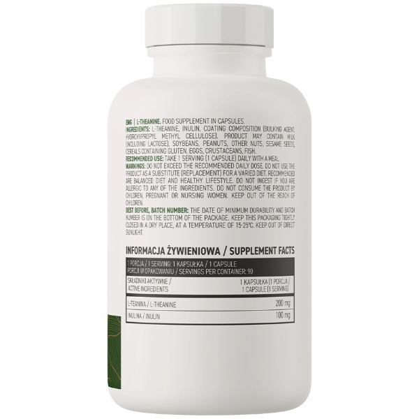 L-теанін, інулін, оболонка капсули (наповнювач: гідроксипропілметилцелюлоза).
