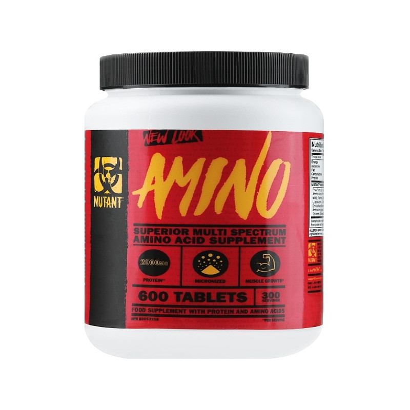 Інгредієнти Mutant Amino : мікрокристалічна целюлоза , стеаринова кислота , діоксид кремнію , соєва олія та порошок , фармацевтичні покриття (тальк , тригліцериди із середньою ланцюгом , рибофлавін , діоксид титану , інулін ) .