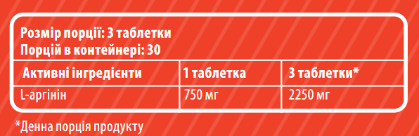 1. Високий вміст аргініну: Кожна таблетка містить 750 мг L-аргініну, що забезпечує необхідну дозу цієї важливої амінокислоти для підтримки здоров'я та поліпшення спортивних показників.