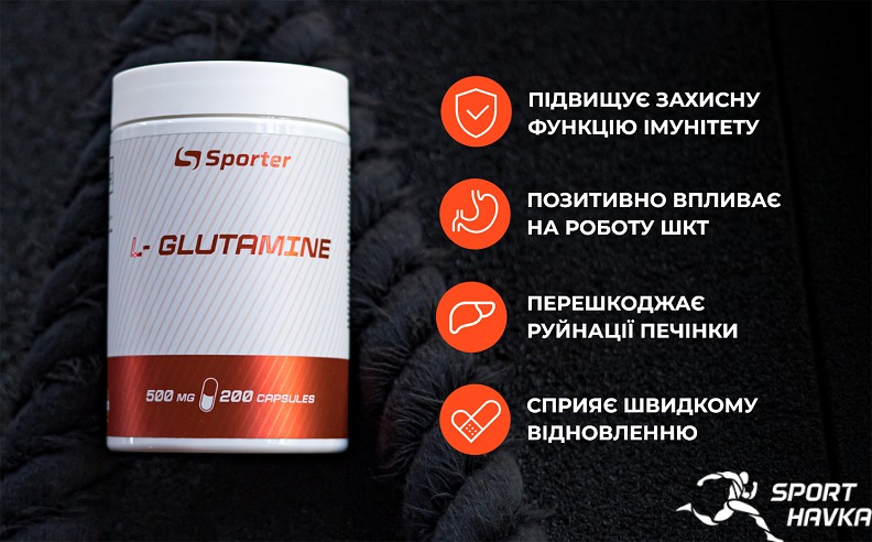 5. Підтримка загального здоров'я:Glutamine має безліч інших корисних властивостей для організму. Він сприяє детоксикації, підтримує здоров'я нервової системи та покращує мозкову діяльність. Це робить L-Glutamine Sporter корисним не лише для спортсменів, але й для всіх, хто прагне підтримувати своє здоров'я на високому рівні.