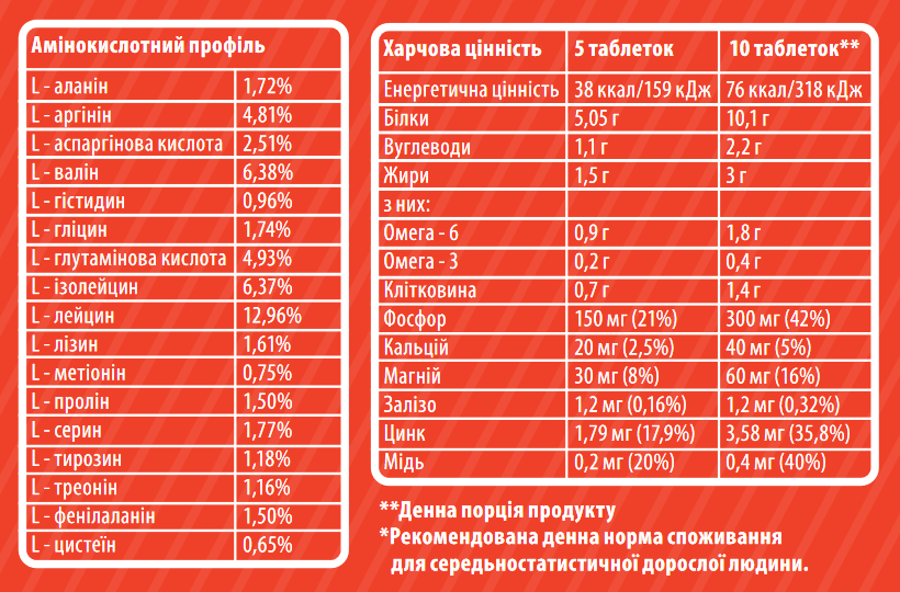 Рекомендовано вживати: приймати одну порцію (5 таблеток) два рази на день, запиваючи достатньою кількістю води.