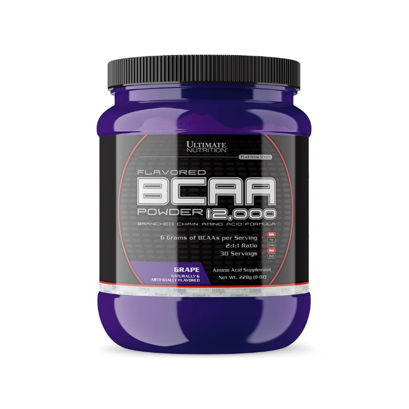 BCAA 12000 Ultimate Nutrition — це високоякісна харчова добавка, спрямована на підтримку м'язової маси, відновлення та збільшення витривалості. У складі містяться амінокислоти з розгалуженими ланцюгами (BCAA), такі як L-Лейцин, L-Валін та L-Ізолейцин, які є важливими будівельними елементами м'язів. Ці амінокислоти допомагають організму відновлюватися після інтенсивних тренувань, сприяють росту сухої м'язової маси та запобігають катаболізму.