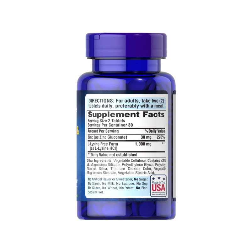 Характеристики    L-Lysine and Zinc Puritan's Pride (60 таблеток)