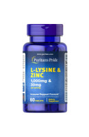 L-Lysine and Zinc від Puritan's Pride - це комбінація двох важливих компонентів, які підтримують здоров'я імунної системи та зміцнюють організм загалом. Цинк відомий своїми антиоксидантними властивостями, а L-лізин - це необхідна амінокислота, яка відіграє ключову роль у виробництві білків і підтримці тканинного здоров'я.