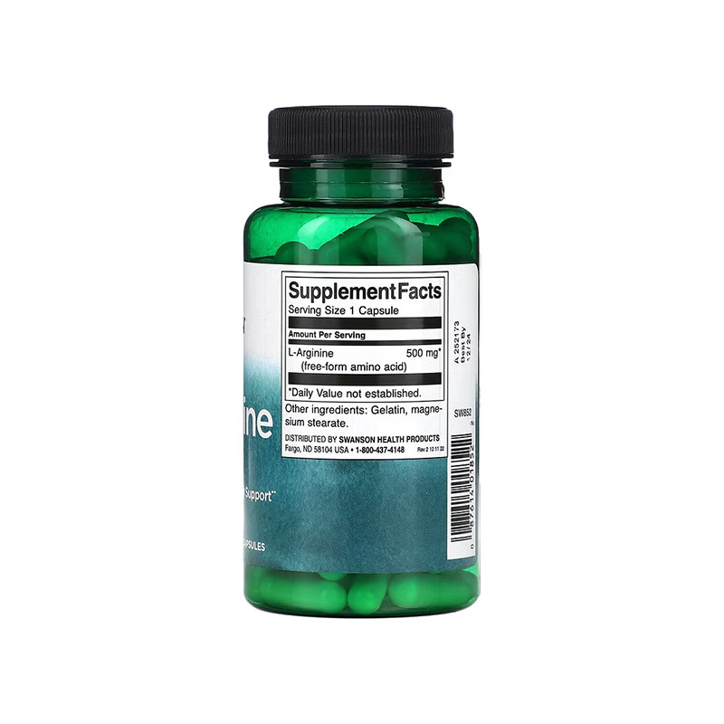 Swanson L-Arginine 500 мг — це ваш надійний помічник у підтримці здоров'я серця, підвищенні витривалості та поліпшенні загального самопочуття. Амінокислота L-аргінін відіграє важливу роль в таких процесах, як синтез білків та виробництво оксиду азоту, який, своєю чергою, сприяє розширенню кровоносних судин.