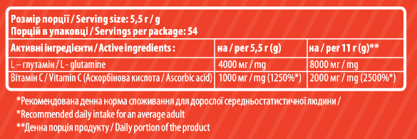 Відновлення м'язів: L-глютамін допомагає пришвидшити процеси відновлення, знижуючи м'язову втому і збільшуючи витривалість.