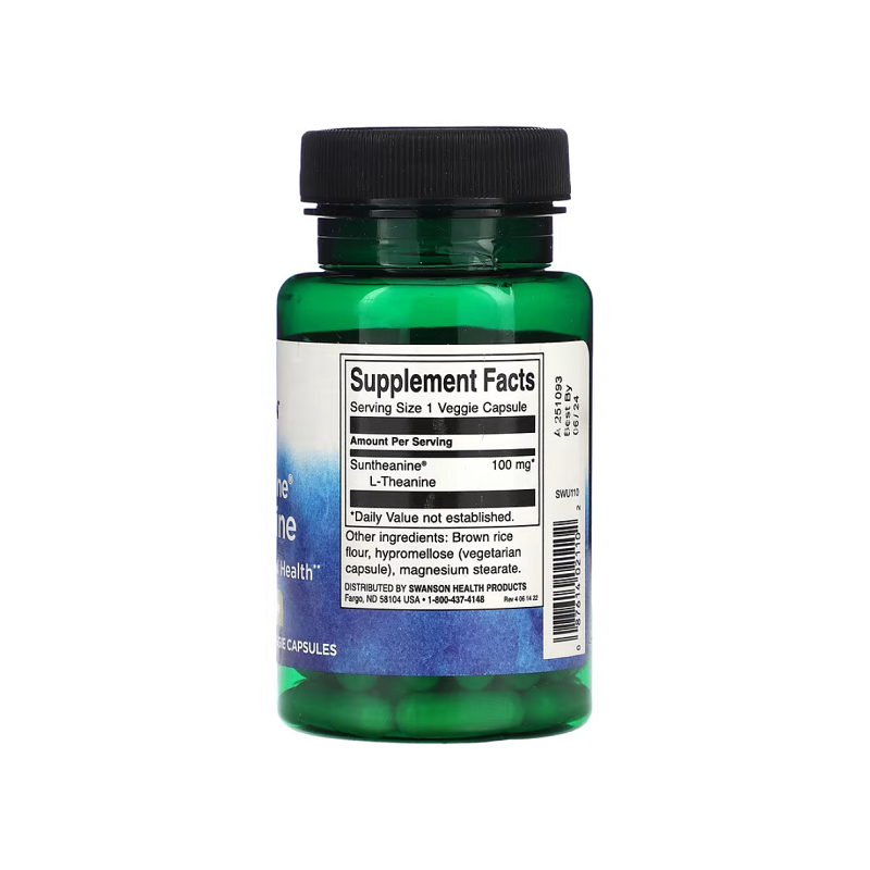 Suntheanine L-Theanine 100 мг Swanson — це дієтична добавка, що містить природну амінокислоту L-теанін, яка підтримує розслаблення та зменшує стрес. Вона покращує зосередженість і якість сну, забезпечуючи при цьому відновлювальний відпочинок. Ідеально підходить для тих, хто хоче підвищити продуктивність без відчуття втоми.