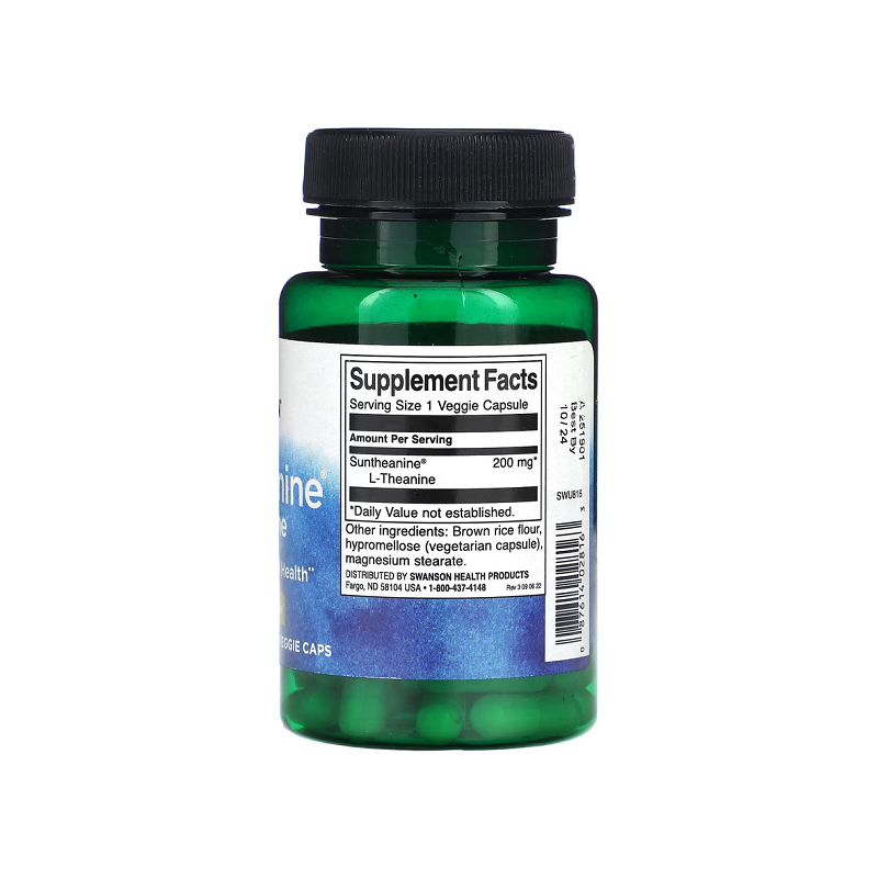 Suntheanine L-Theanine 200мг Swanson — це відмінний вибір для тих, хто хоче підтримати своє психоемоційне здоров'я, покращити концентрацію та знизити рівень стресу.