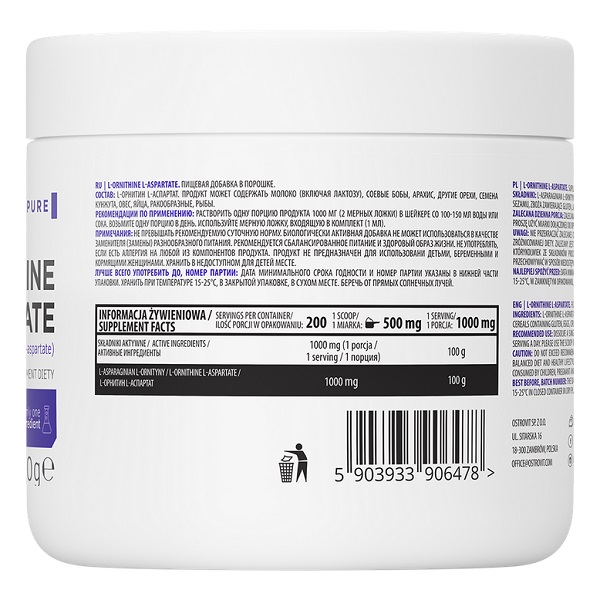 L-Ornithine L-Aspartate OstroVit — це добавка для підтримки здоров'я печінки та зменшення рівня аміаку в організмі. Допомагає покращити відновлення після фізичних навантажень та знизити втому. Підходить для спортсменів і людей, які ведуть активний спосіб життя.