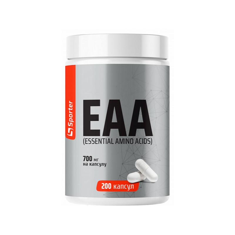 Добавка, що містить комплекс незамінних амінокислот (EAA), необхідних для ефективного відновлення м'язів і покращення спортивних результатів. Амінокислоти є основою для синтезу білків у нашому організмі, тому їхня присутність у вигляді добавки особливо важлива під час інтенсивних фізичних навантажень. Продукт містить всі дев'ять незамінних амінокислот, які не синтезуються в організмі, тому їх потрібно отримувати з їжею чи добавками. Регулярне застосування EAA 700мг сприяє зменшенню катаболічних процесів (руйнування м'язів), підвищенню витривалості та прискоренню відновлення після тренувань.