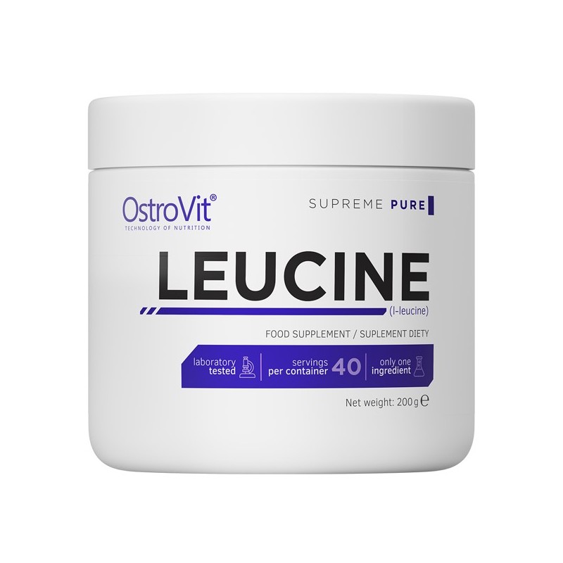 Добавка Leucine від OstroVit містить 5 грам лейцину в кожній порції і стане відмінним доповненням раціону атлетів і спортсменів. Її регулярний прийом допомагає підтримувати мязову масу, активує відновні процеси і в цілому позитивно впливає на організм. Лейцин стимулює вироблення глікогену-поживної речовини на базі глюкози, яке зберігається в мязових волокнах і використовується для підтримки мязових скорочень. Амінокислота підтримує оптимальний баланс азоту, поліпшує когнітивні навички, підтримує здоровя шкіри, кісток і мязової тканини.