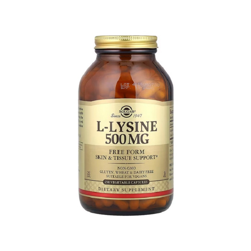 Високоякісна амінокислота, що підтримує здоров’я імунної системи, шкіри та сполучної тканини. Лізин є незамінною амінокислотою, яку організм не виробляє самостійно, тому її необхідно отримувати з їжею або добавками. Продукт сприяє утворенню колагену, що забезпечує еластичність шкіри, міцність кісток і здоров’я суглобів. Також L-лізин бере участь у засвоєнні кальцію, підтримує відновлення тканин після фізичних навантажень і допомагає боротися з вірусами, зокрема вірусом герпесу. Кожна капсула містить оптимальну дозу для щоденного поповнення запасів цієї важливої амінокислоти.