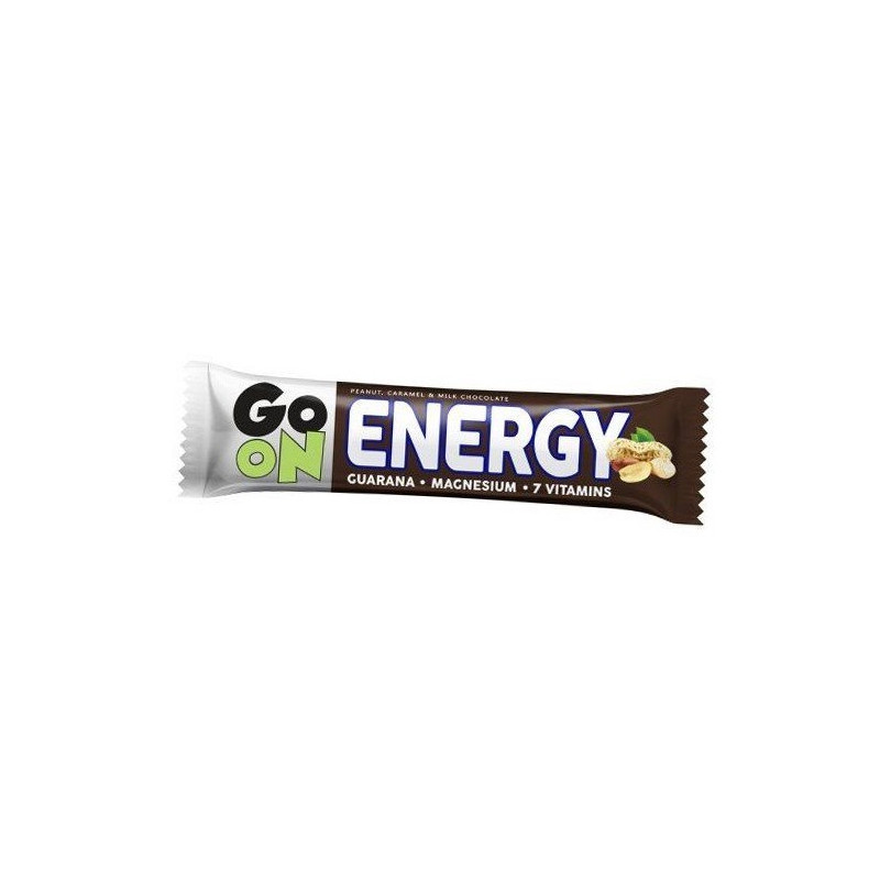 GO ON Energy – енергетичний батончик із продуманим збалансованим складом від польського виробника товарів для здоров'я GO ON. Горіхово-карамельна начинка і ніжний молочний шоколад перетворюють його на вишукані ласощі, які припадуть до душі кожному. Крім того, цей продукт надзвичайно корисний: крім якісних макросів – білків, жирів та вуглеводів, у ньому містяться вітаміни С, Е та групи В, магній, кофеїн та екстракт гуарани.