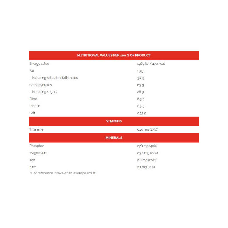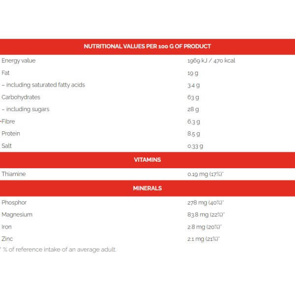 Crispy Bar від відомого виробника з Польщі Go On – енергетичний батончик-мюслі з оригінальним збалансованим смаком вівсянки та шоколаду, приємною хрусткою скоринкою, без консервантів, ароматизаторів, стабілізаторів та підсилювачів смаку. Це ідеальний варіант правильного здорового харчування, від якого можна отримувати не тільки користь, а й задоволення. Він містить цілісні зерна вівса, мед, сирий тростинний цукор та натуральне какао. Завдяки такому складу ласощі відрізняються високою поживною цінністю. А присутність у ньому цілого ряду вітамінів, мінералів та харчових волокон робить батончик ще кориснішим.