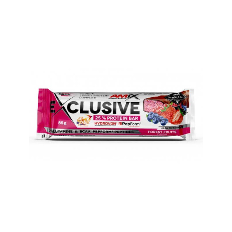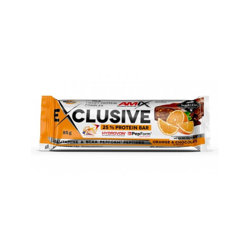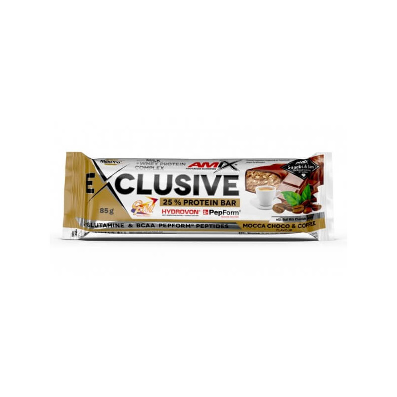 Exclusive Protein Bar від відомого англійського бренду Amix – універсальний білковий батончик, склад якого заслуговує на особливу увагу. Протеїнова складова представлена у вигляді унікальної авторської формули MilkPro Protein Blend. Це збалансований мікс сироваткового концентрату і гідролізату сироваткового ізоляту, доповнений ВСАА і глютаміном і посилений пептидами, що пройшли гідролізацію.