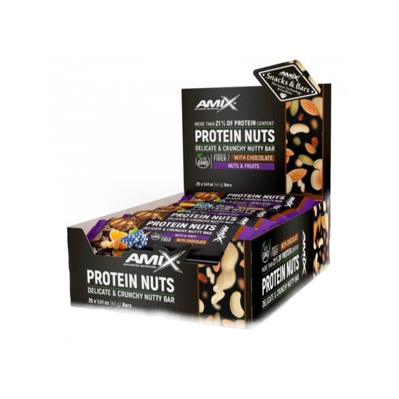 Protein Nuts Bar – вишуканий протеїновий батончик від британського виробника Amix, до складу якого входить велика кількість натурального якісного білка, корисні жири, вуглеводи з різним ступенем засвоюваності, харчові волокна, вітаміни та мінерали.