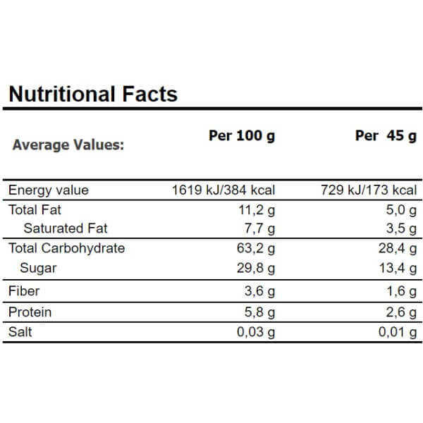 Крім вуглеводів, у складі присутні корисні жири та натуральні молочні протеїни з широким амінокислотним профілем, що включає ВСАА. Батончик має приємну текстуру та представлений у трьох смакових варіантах – тропічного манго, шоколадно-бананових чіпсів та горіхового крему з какао.