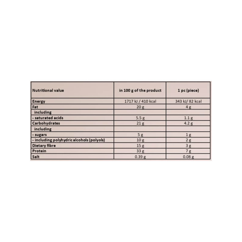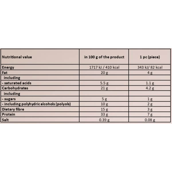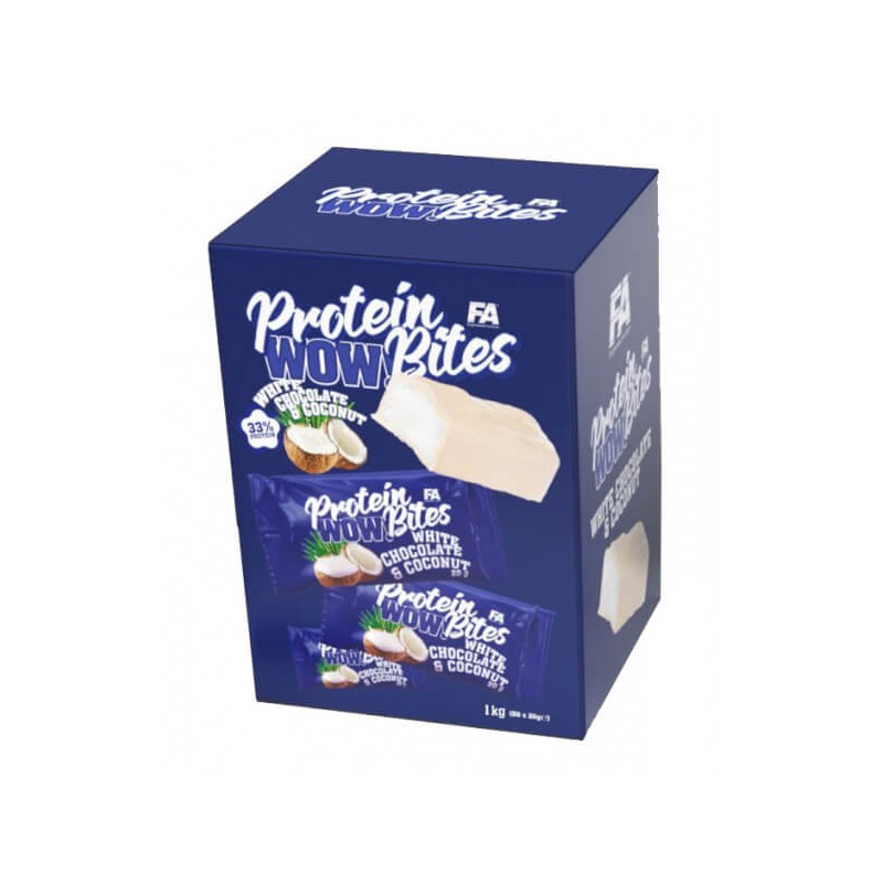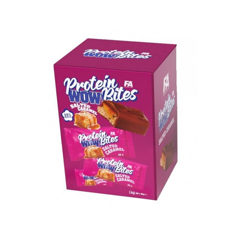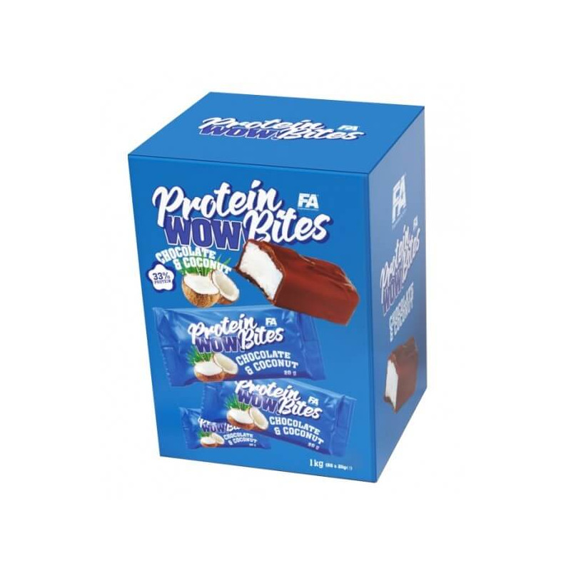 Wow! Protein Bites – протеїновий батончик від одного з провідних європейських виробників здорових солодощів, польського бренду Fitness Authority. Від звичайних кондитерських виробів він відрізняється підвищеним вмістом білка, мінімальною кількістю доданого цукру та відсутністю рецептури кондитерських жирів. Крім того, у складі шоколадної глазурі – не менше 43% чистого какао.