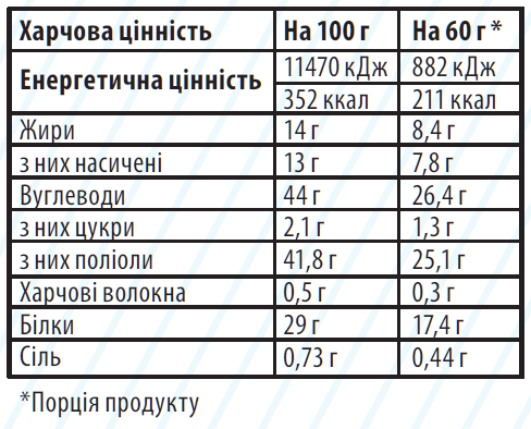 Смак: Приємний молочний смак задовольнить потреби навіть найвибагливіших гурманів.