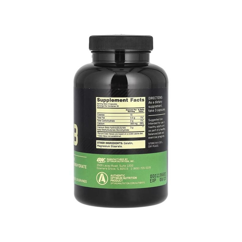 HMB 1000 від популярного американського спортивного бренду Optimum Nutrition – біоактивна добавка на основі гідрокси-метил-бутирату кальцію, дія якої спрямована на підтримку, зростання та відновлення м'язів.