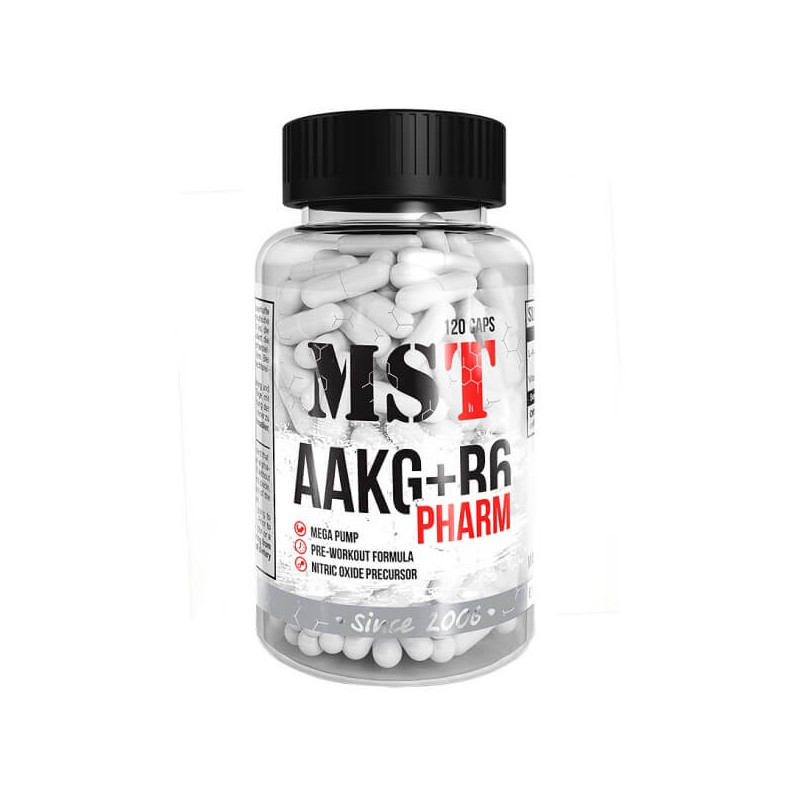 AAKG+B6 Pharm від німецької компанії MST – революційна біодобавка, в якій аргінін представлений у стабілізованій формі альфа-кетоглутарату – комбінації солей, що значно підвищують його ефективність, та доповнено вітамінів В6. Завдяки такій формі аргінін більш активно та результативно бере участь у виробництві оксиду азоту та підвищує швидкість поставок поживних речовин та корисних компонентів до органів та тканин.