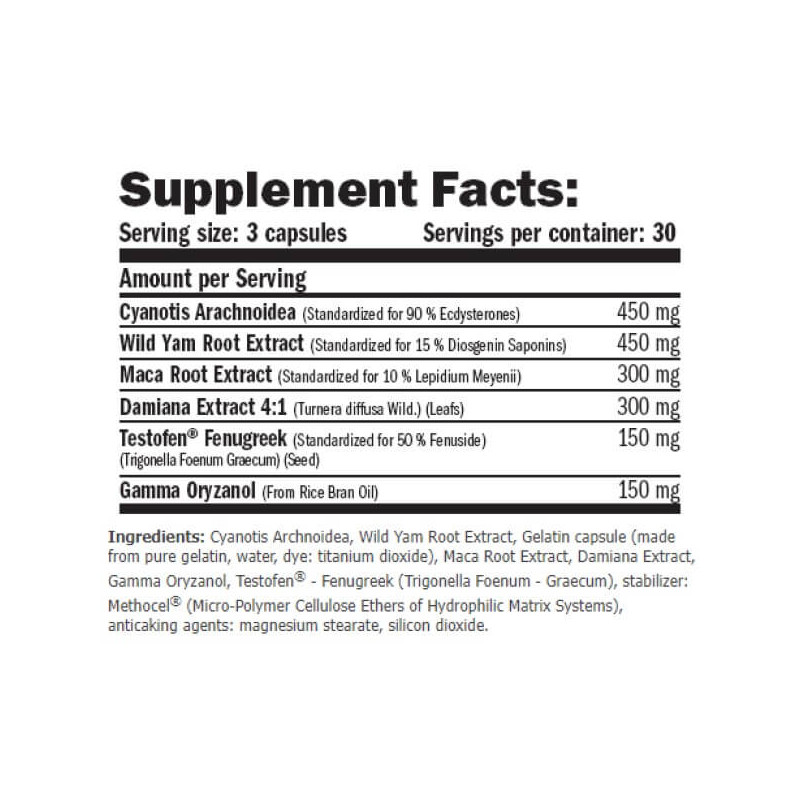 Ecdy-Sterones – натуральна біоактивна добавка від англійського бренду Amix, до складу якої входять одразу кілька рослин із високим вмістом природного екдістерону. Він має подібну до тестостерону дію, будучи гідною безпечною альтернативою синтетичним стероїдним препаратам і справжньою «паличкою-виручалочкою» для багатьох представників сильної статі.