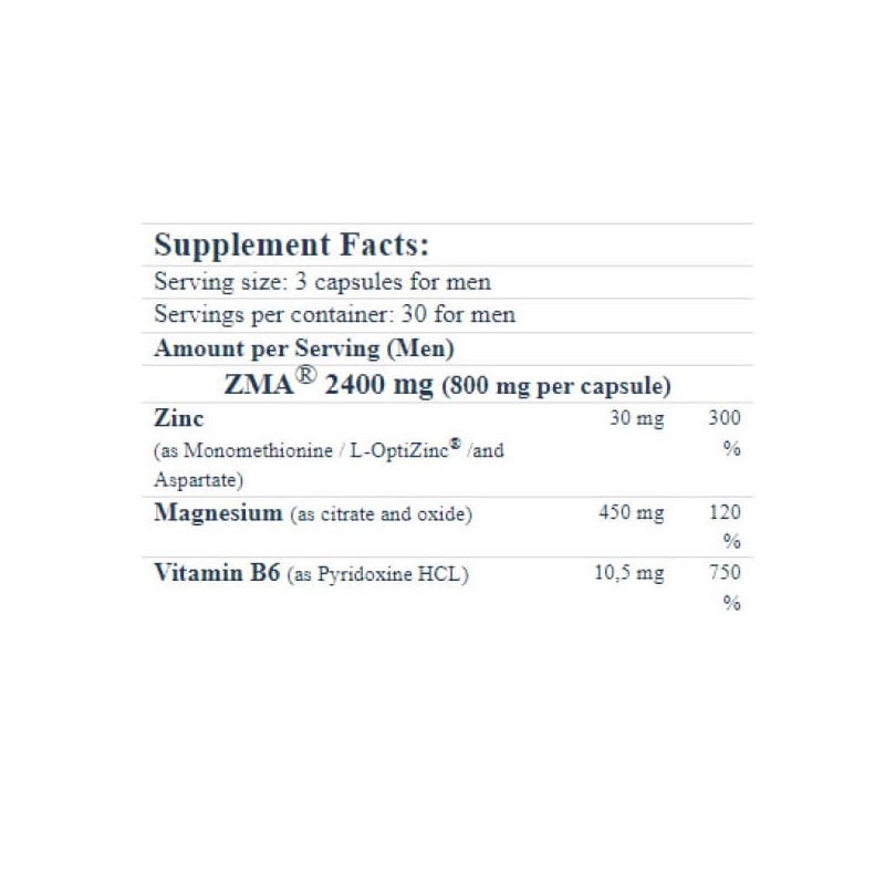 При регулярному прийомі відповідно до рекомендацій експертів біоактивна добавка ZMA від Amix: